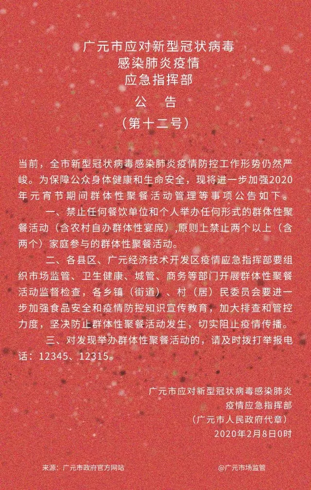 2月7日,廣元市應對新型冠狀病毒感染肺炎疫情應急指揮部發(fā)布11號、12號公告。