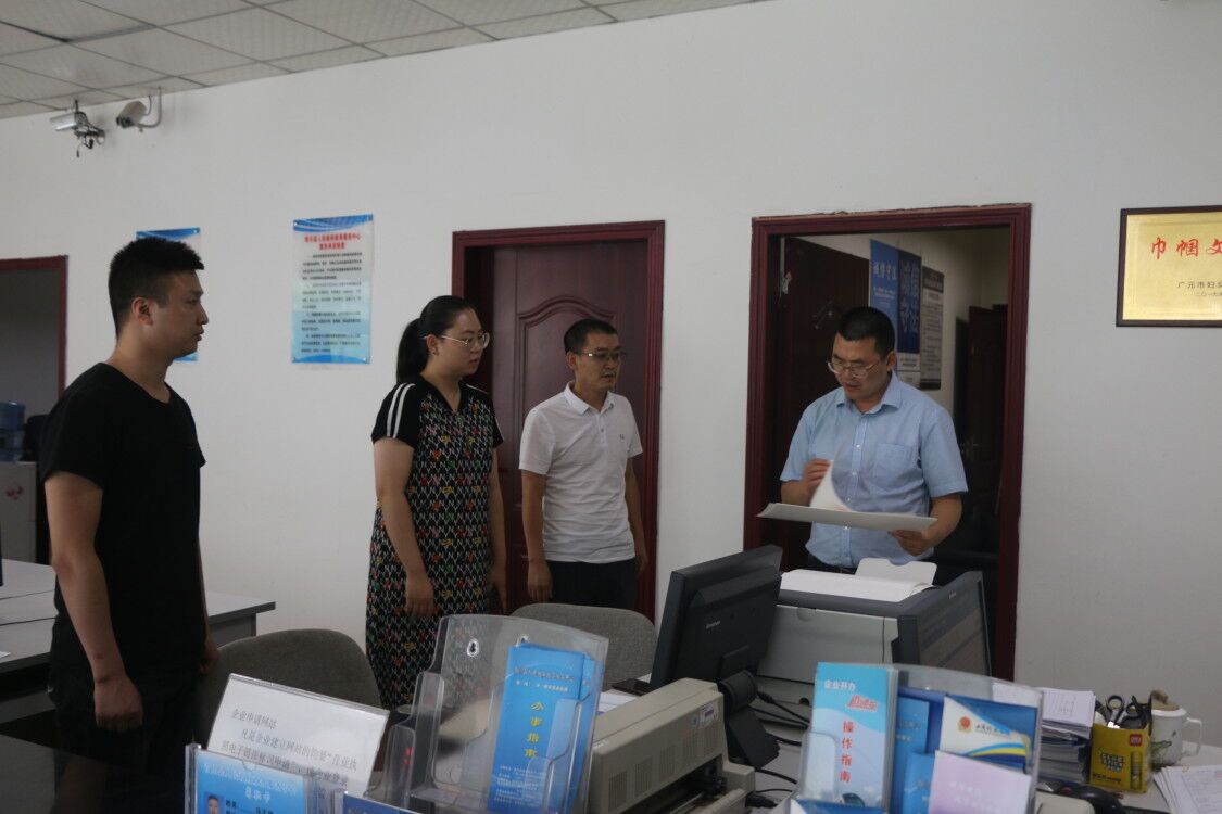 李代根實地查看青川縣市場監管前臺宣傳資料擺放、工作人員業務辦理及后室辦公情況,詳細了解窗口人員設置、印章刻制和“營商通”實際運作情況,并與窗口人員深入交流。