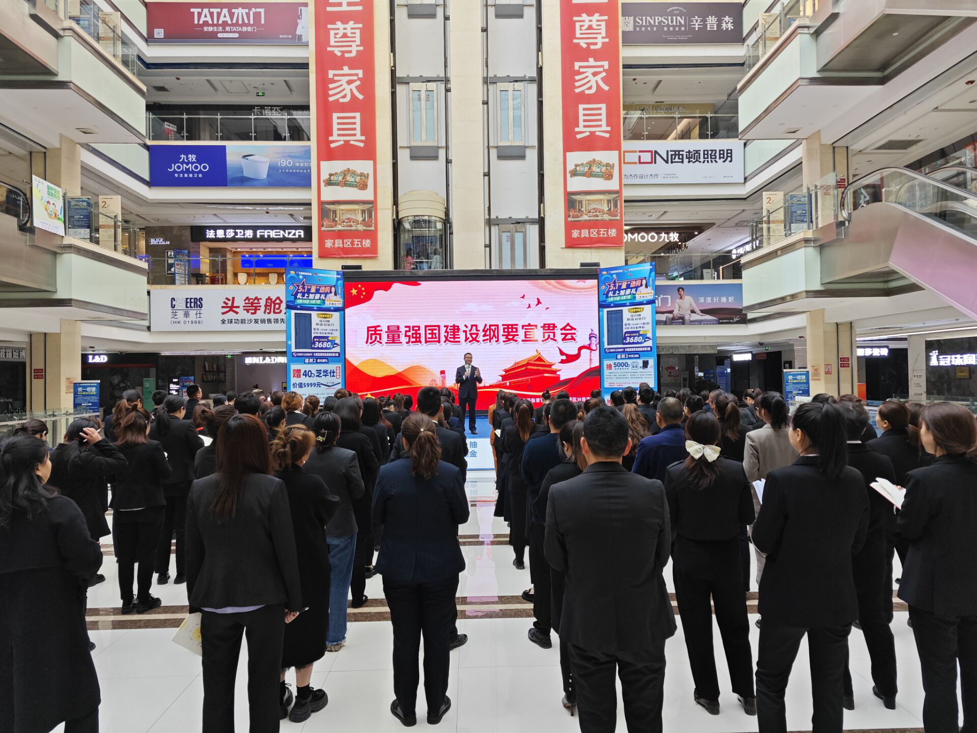“線上”“線下”結合,營造濃厚氛圍。依托兩微一端、官方網站、QQ群、戶外廣告屏、樓宇商場、廣場和社區宣傳欄(牌)等載體,轉發并宣傳解讀《綱要》精神。在人流量密集的廣場、步行街,通過設置展牌、發放宣傳資料、咨詢講解等方式向廣大群眾宣傳《綱要》相關精神和要求,制發各類標語、橫幅、展板、宣傳折頁等宣傳材料超1.3萬份,進一步提高全民質量意識。