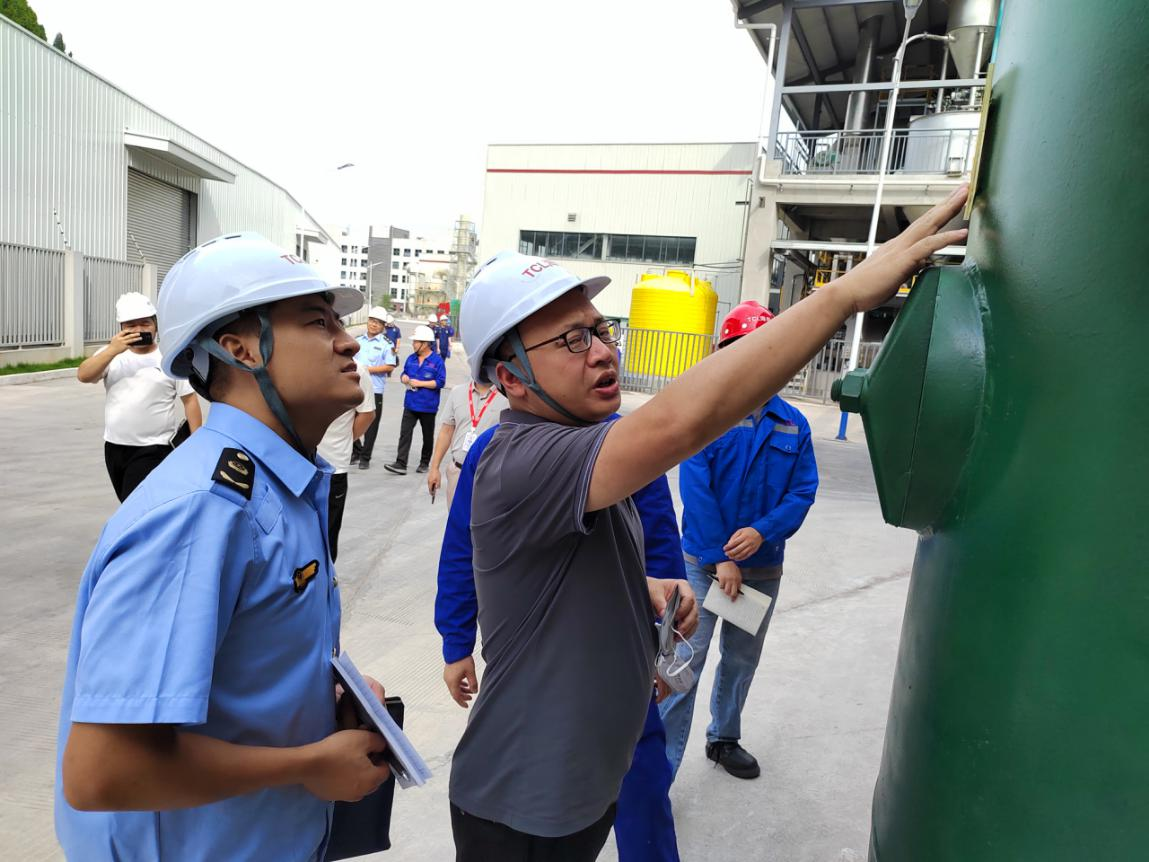 檢查組一行深入四川TCL海能環境科技有限公司,現場觀摩了公司園區安全生產工藝流程,查看了叉車、起重機械、鍋爐、壓力容器等特種設備安全和消防設施設備使用管理情況,聽取了屬地監管部門汛期安全防范工作匯報。