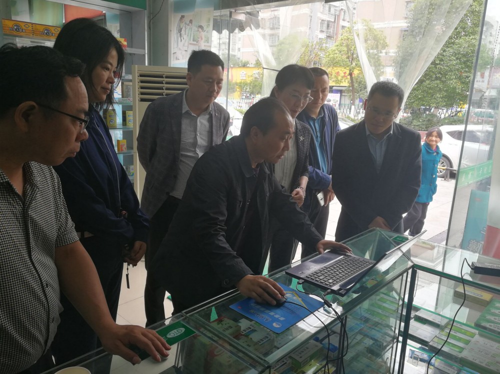 考察組一行與我局領導、利州局及藥品監督管理科、注冊登記科等進行了座談。座談中雙方就藥品零售企業開展遠程審方、職業藥師掛證專項整治、職業藥師注冊登記等內容進行了深入交流。隨后前往太星益康大藥房、芝心大藥房、四川駿逸富頓科技有限公司遠程處方審方服務后臺等地進行了實地考察。每到一處,考察組都耐心聽取我局監管人員介紹,并不時提出疑問與企業及我局工作人員進行交流探討,積極學習我市在藥品安全監管方面的經驗與做法。