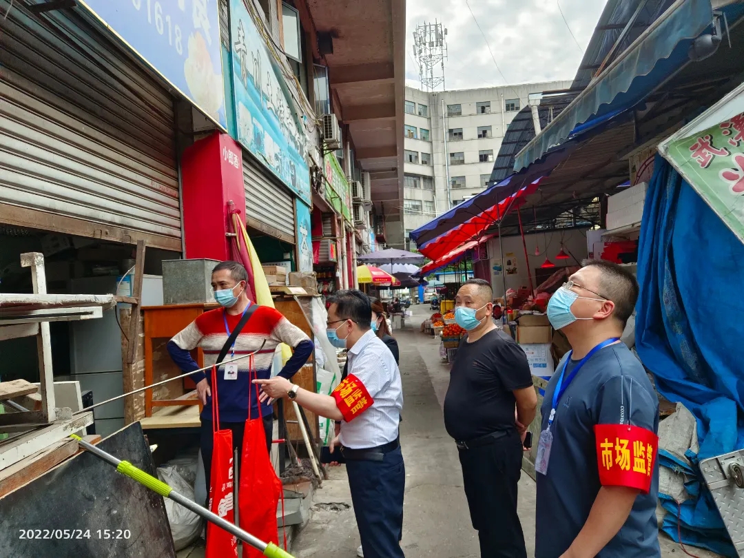 5月24日,局班子成員帶領相關科室深入主城區各農貿市場,對照《農貿(集貿、批發)市場文明城市創建標準》形成問題清單,逐一排查整改,切實推進市場秩序持續改觀。市區兩級市場監管部門成立巡回督導組,由市局主要領導擔任組長,分管領導、牽頭科室及轄區負責人為成員,不間斷在主城區各農貿市場巡回督導檢查,緊盯整治任務目標,追蹤責任落實,推進農貿市場文明城市創建工作任務落實落細。