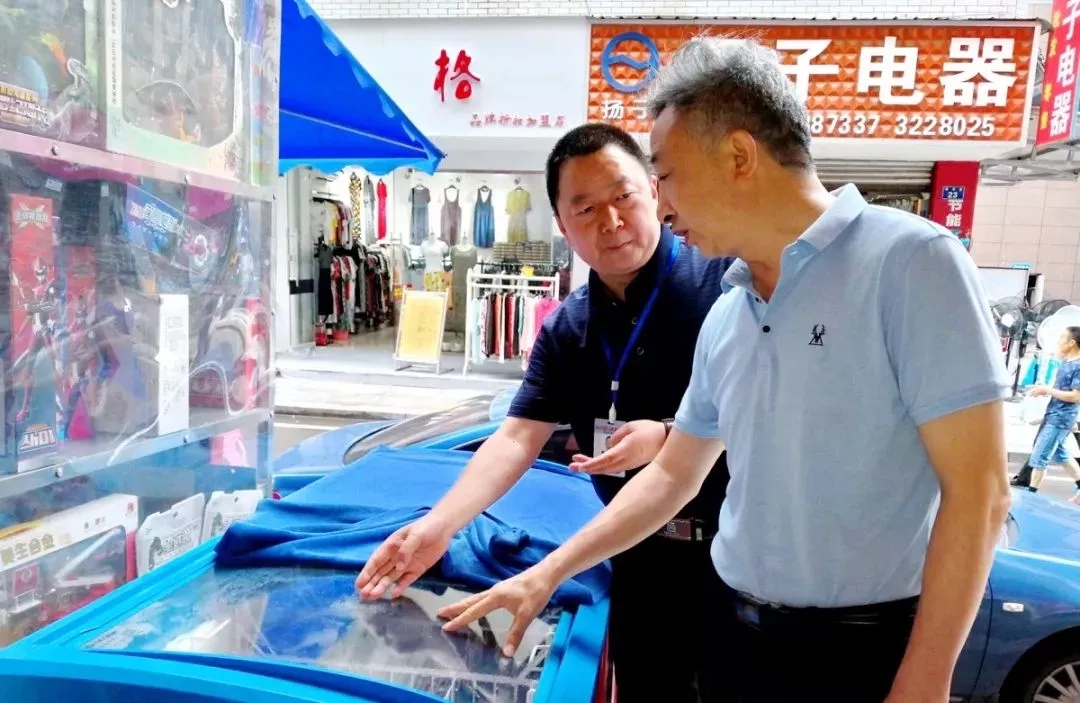 7月8日,市市場監管局黨組副書記、局長馮治勤對市中心城區校園周邊食品安全監管工作進行檢查。