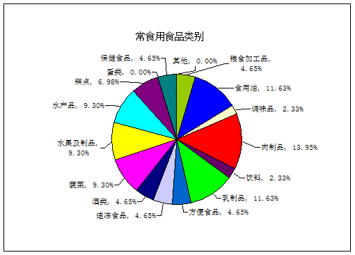 (2)檢測的食品類別:豬肉、進口肉類、海鮮、養殖魚蝦蟹、火鍋底料、餐飲具、反季節蔬菜、蔬菜制品、食用植物油、燒烤調味品、大米、食用植物油、餐飲具、奶粉、皮蛋