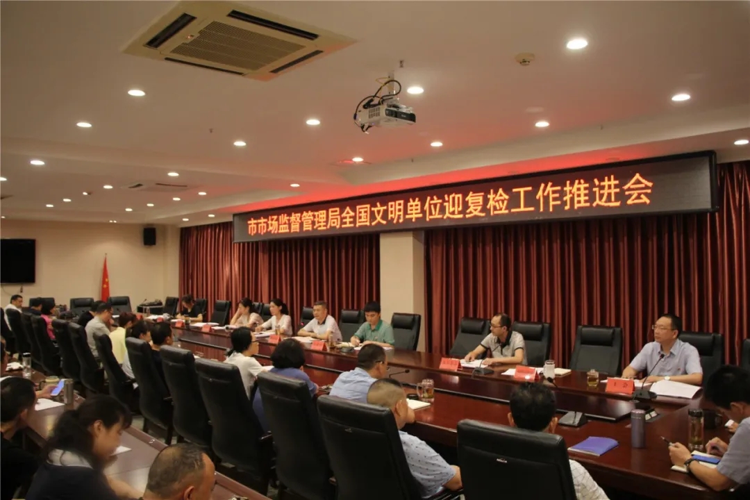 8月27日下午,市市場監管局在局機關五樓會議室召開了全國文明單位迎復檢工作推進會,對復查迎檢工作進行再部署、再督促、再落實。黨組書記陳懷乾參加會議并講話,機關黨委書記吳建平主持會議。