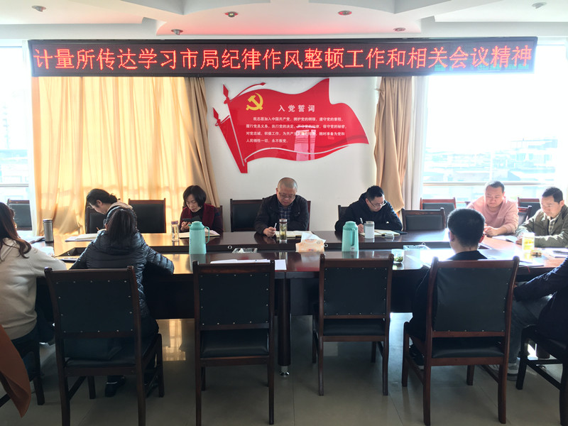 4月2日,市計量所召開職工大會,傳達學習市局紀律作風整頓工作會議精神,組織學習了市局黨組書記、局長任湘濤同志的重要講話精神。