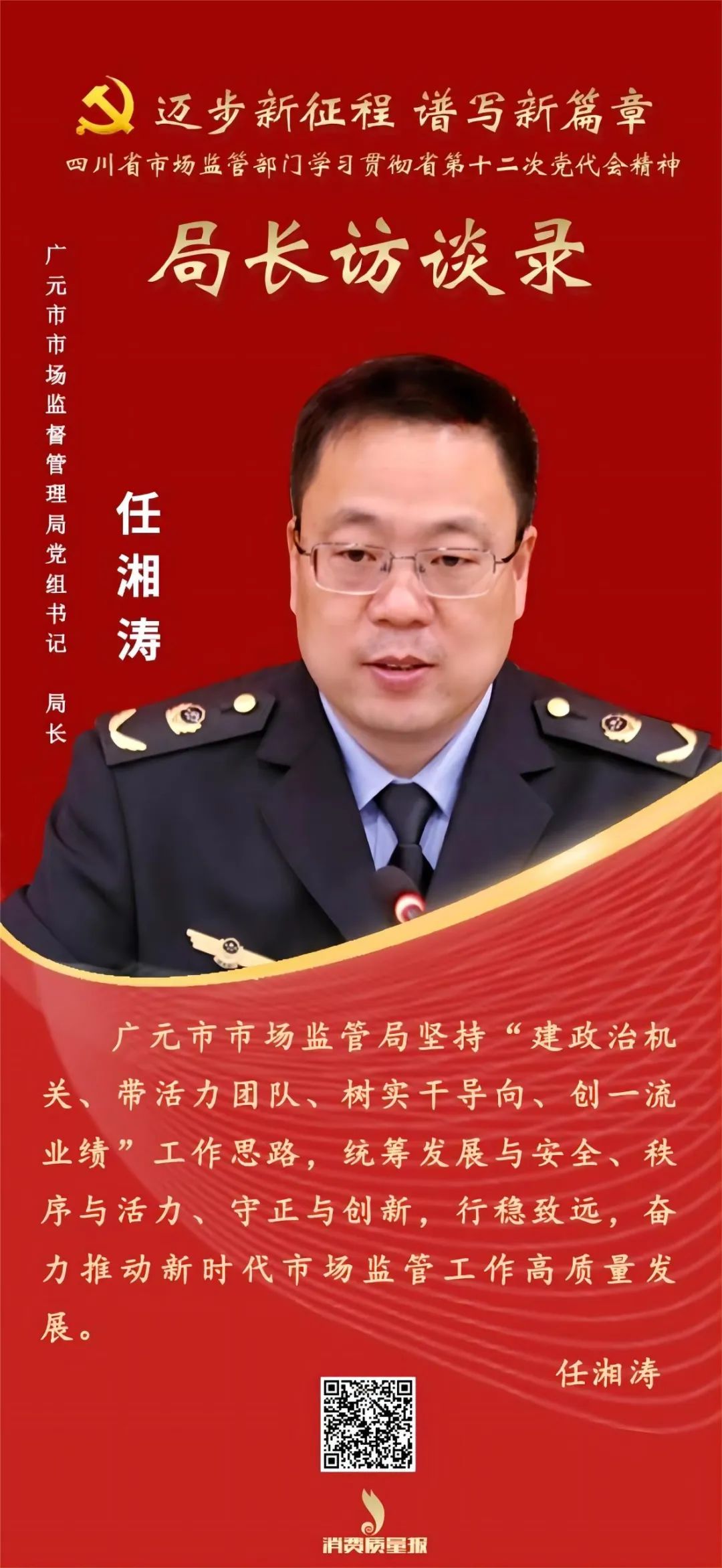 連日來,廣元市市場監(jiān)督管理局堅持把學習貫徹省第十二次黨代會精神作為重要政治任務(wù)之一,堅持學用結(jié)合,緊扣“講政治、抓發(fā)展、惠民生、保安全”工作總思路,將黨代會精神轉(zhuǎn)化為推動市場監(jiān)管工作的動力,推動市場監(jiān)管領(lǐng)域各項事業(yè)高質(zhì)量發(fā)展。近日,記者采訪了廣元市市場監(jiān)督管理局黨組書記、局長任湘濤。