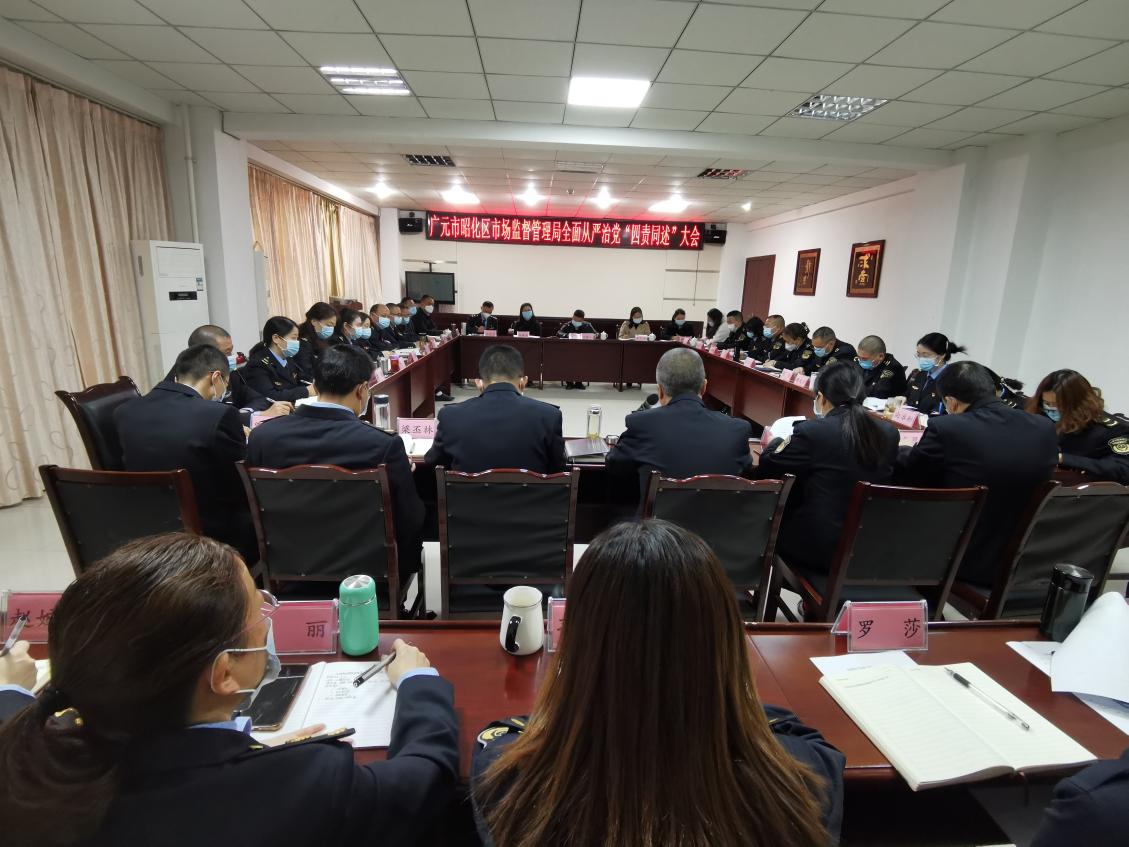 11月4日,中共廣元市昭化區市場監督管理局黨組召開2022年全面從嚴治黨“四責同述”會議,區市場監管局班子成員、中層干部、各市場監管所所長、“兩代表一委員”、特約監察員、管理與服務對象代表等38人參加會議。區紀委監委駐區農業農村局紀檢監察組組長陳德浩同志主持會議。