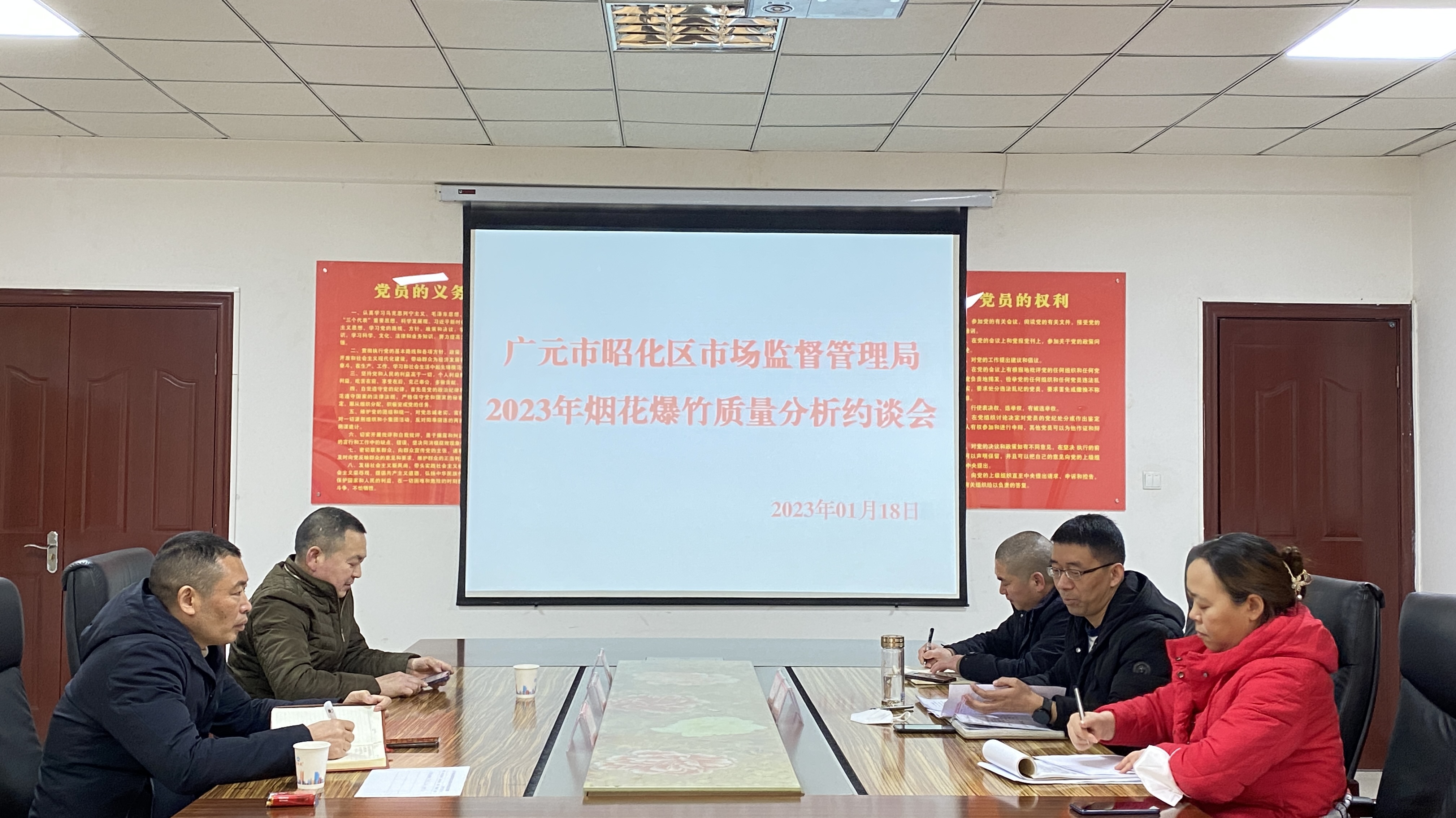 為做好歲末年初煙花爆竹產(chǎn)品質(zhì)量安全監(jiān)管工作,結(jié)合“春雷行動2023”安排部署,1月18日,昭化區(qū)市場監(jiān)管局組織轄區(qū)煙花爆竹批發(fā)企業(yè)負責人,召開了煙花爆竹質(zhì)量安全分析會。