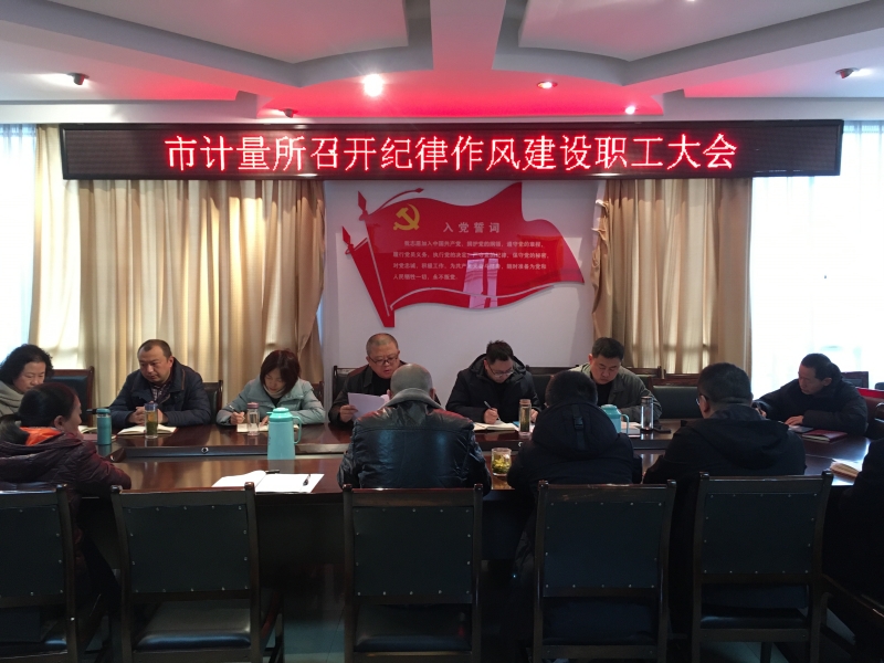 12月22日,市計(jì)量檢定測(cè)試所召開紀(jì)律作風(fēng)建設(shè)職工大會(huì)。會(huì)上,組織學(xué)習(xí)了廣元市紀(jì)委印發(fā)的《紀(jì)律作風(fēng)三年提升行動(dòng)方案(2023—2025年)》,傳達(dá)了市局第32次黨組(擴(kuò)大)會(huì)議關(guān)于紀(jì)律作風(fēng)建設(shè)工作會(huì)議精神,安排部署了下一階段工作,明確要把紀(jì)律作風(fēng)建設(shè)工作落到實(shí)處。