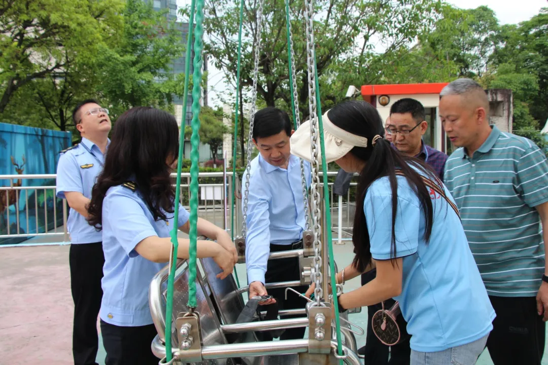 在嘻哈樂園,王華南一行現(xiàn)場宣貫了《大型游樂設(shè)施安全技術(shù)規(guī)程》(TSG71-2023),對五一假日將啟用的大型游樂設(shè)施進行運營前準備事項檢查與提醒。他強調(diào),大型游樂設(shè)施運營者必須取得檢驗合格報告和特種設(shè)備使用標志,必須按規(guī)定將作業(yè)人員、服務人員配備到位,做好崗前教育培訓,必須做好充分試運行且無異常后方可運營,必須修訂完善好各項安全管理制度,嚴格按制度管人管事管設(shè)備。