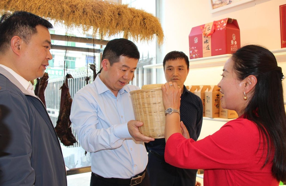 王華南一行參觀了中山村致富帶頭人樊澗華創(chuàng)辦的東溪鎮(zhèn)鄉(xiāng)村振興農(nóng)特產(chǎn)品展銷中心。該中心占地80余平方米,以經(jīng)營中山村本地農(nóng)特產(chǎn)品為主。樊澗華向王華南詳細(xì)介紹了展銷中心手工鹽菜、果酒、臘肉等特色農(nóng)產(chǎn)品和電商銷售有關(guān)情況,對(duì)駐村工作隊(duì)幫助指導(dǎo)她辦理營業(yè)執(zhí)照和“鄉(xiāng)澗溪”注冊商標(biāo)登記再次表示感謝。當(dāng)了解到樊澗華生產(chǎn)的手工鹽菜年銷售額達(dá)110余萬元,為中山村50余名60歲以上留守老人提供了就業(yè)崗位和月平均3000余元的收入,并帶動(dòng)周邊400余人增收,本人也被市總工會(huì)評(píng)為2023年度廣元市“最美勞動(dòng)者”,王華南指出,樊澗華起到了良好的示范帶頭作用,廣元市市場監(jiān)管局將進(jìn)一步加大對(duì)樊澗華等致富帶頭人的幫扶力度,支持其不斷做優(yōu)做大做強(qiáng)。同時(shí)他希望樊澗華無論走多遠(yuǎn),不忘來時(shí)路,在追求個(gè)人發(fā)展同時(shí),一定要致力帶動(dòng)全村鄉(xiāng)親共同致富。