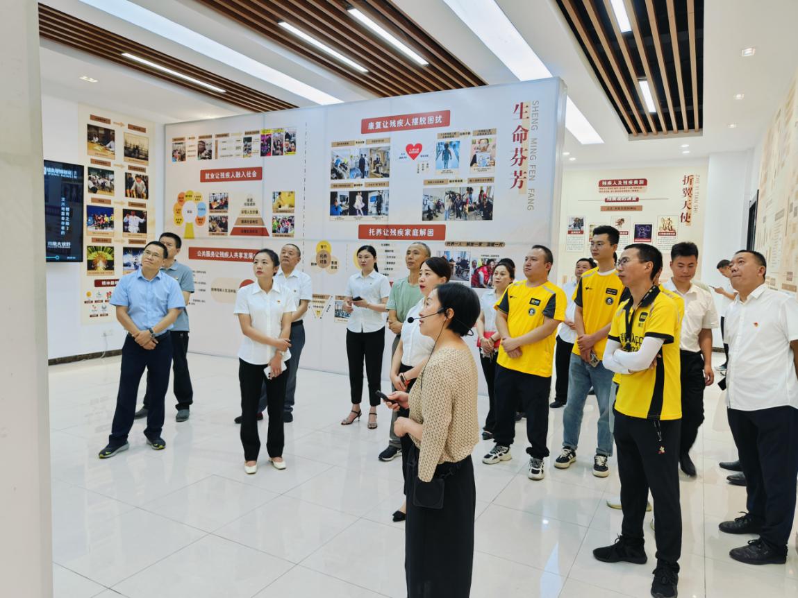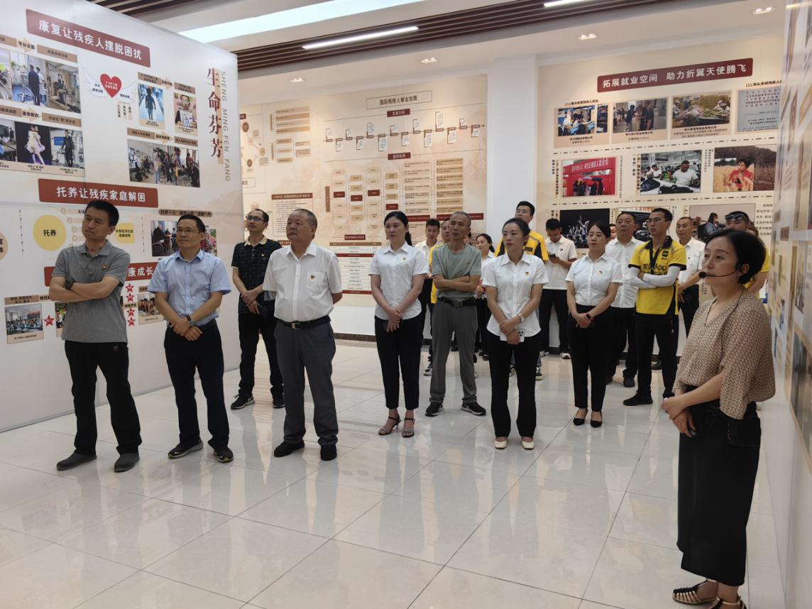 全體黨員先后參觀基地圖片展、殘疾人手工藝術品展覽、殘疾人舉重隊訓練場、新時代服裝廠,聆聽了工作人員的講解,大家不禁感嘆于基地獨特的管理模式,更被殘疾人朋友自強不息、頑強拼搏、永不服輸的精神和信念深深感動。通過“零距離”接觸殘疾朋友,切身感受到殘疾朋友身殘志堅、頑強奮斗的拼搏精神和殘疾人就業創業的艱辛歷程,進一步增強了為殘疾朋友服務的激情和決心。