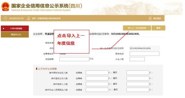 第六步:可“導入上一年年度信息”一鍵填報,核實與當前年度年報信息是否一致(如無上一年度信息填報功能,自行填寫即可)