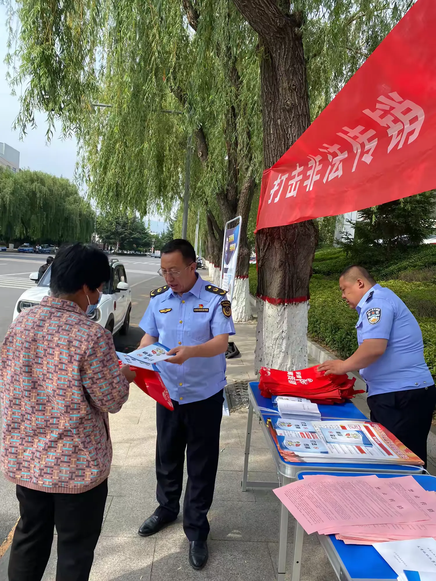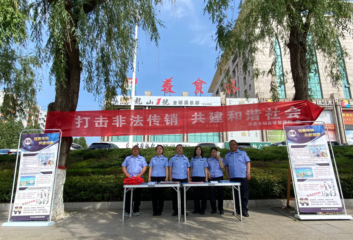 為進(jìn)一步加大打擊傳銷宣傳教育工作力度,提高群眾對(duì)傳銷的辨別能力和防范意識(shí)。2025年5月16日,涉縣市場(chǎng)監(jiān)管局聯(lián)合涉縣公安局,在美食林廣場(chǎng)組織開(kāi)展打擊傳銷規(guī)范直銷普法宣傳教育活動(dòng)。