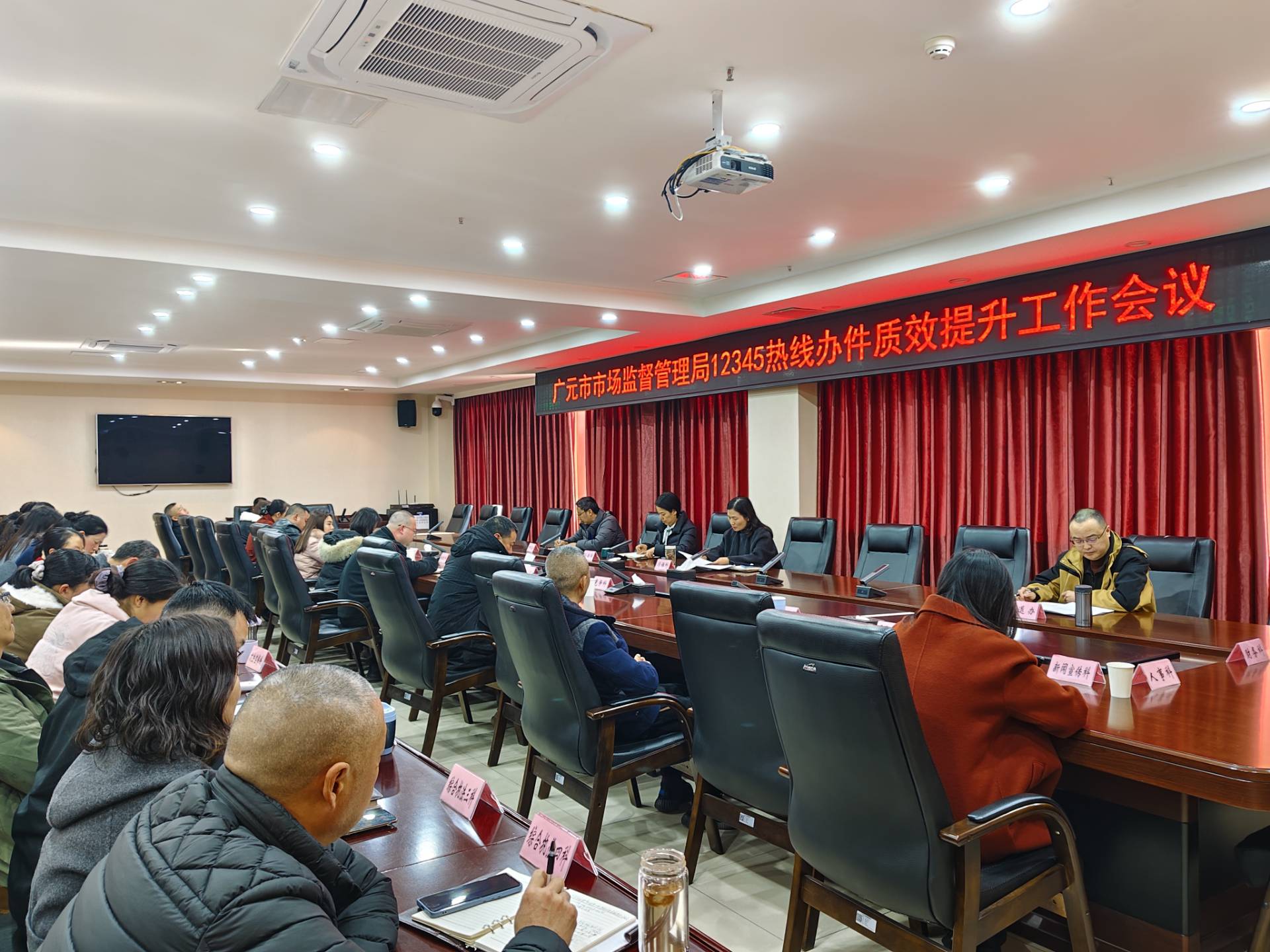 12月16日,廣元市市場監督管理局召開12345熱線辦件質效提升工作會議,局黨組成員、總經濟師孫驪華主持會議,局機關各科室及直屬單位主要負責人參加會議。