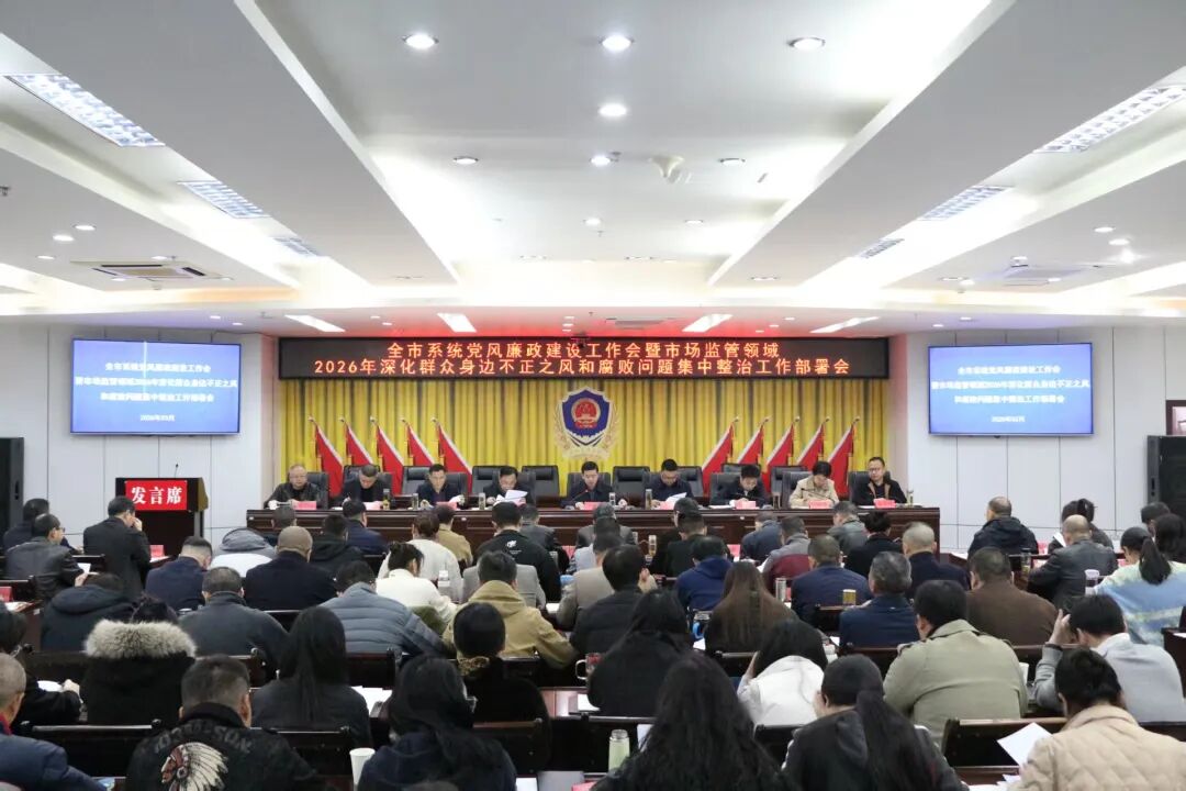 3月9日,市市場(chǎng)監(jiān)管局召開(kāi)全市系統(tǒng)黨風(fēng)廉政建設(shè)工作會(huì)暨市場(chǎng)監(jiān)管領(lǐng)域2026年深化群眾身邊不正之風(fēng)和腐敗問(wèn)題集中整治工作部署會(huì)議,深入學(xué)習(xí)貫徹習(xí)近平總書記在二十屆中央紀(jì)委五次全會(huì)上的重要講話及全會(huì)精神,國(guó)務(wù)院第四次廉政工作會(huì)議精神,省紀(jì)委十二屆五次全會(huì)、省政府第四次廉政工作會(huì)議精神,市紀(jì)委八屆六次全會(huì)、市政府第五次廉政工作會(huì)議精神,及時(shí)傳達(dá)學(xué)習(xí)全省系統(tǒng)黨風(fēng)廉政建設(shè)工作會(huì)暨2026年市場(chǎng)監(jiān)管領(lǐng)域深化群眾身邊不正之風(fēng)和腐敗問(wèn)題集中整治工作部署會(huì)議精神,總結(jié)回顧2025年工作成效,分析當(dāng)前形勢(shì)和存在的問(wèn)題,安排部署2026年重點(diǎn)任務(wù)。局黨組書記、局長(zhǎng)王華南出席會(huì)議并講話,黨組成員、副局長(zhǎng)馬玉東主持會(huì)議,市紀(jì)委監(jiān)委駐市人大機(jī)關(guān)紀(jì)檢監(jiān)察組副組長(zhǎng)李學(xué)民站在紀(jì)檢監(jiān)察角度提出工作要求。