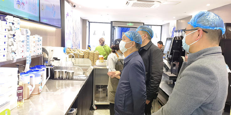 隨后,楊金軍一行前往美團外賣平臺上的部分奶茶店、快餐店等銷量較高、受眾較廣的網(wǎng)絡餐飲單位,開展食品安全專項督導檢查。重點查看證照公示、從業(yè)人員健康管理、食品原料采購貯存、加工制作過程、餐飲具清洗消毒及外賣食品“食安封簽”使用等情況。在瑞幸咖啡等門店,楊金軍詳細詢問鮮奶、果醬等原料的進貨渠道和保質(zhì)期管理,進入后廚檢查食用油油品質(zhì)量、索證索票制度落實及炸制過程衛(wèi)生狀況。他要求經(jīng)營者嚴把原料關(guān),杜絕使用過期、變質(zhì)食材,確保飲品新鮮、安全,必須誠信經(jīng)營,保證食品加工過程透明規(guī)范。