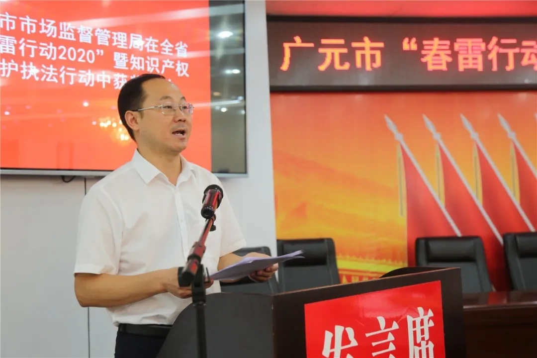 7月17日,廣元市“春雷行動2020”暨知識產權保護執法行動工作總結會在市市場監管局十樓會議室召開。市委常委、副市長孔祥泉出席會議并講話,市政府副秘書長李慶華主持會議,市市場監管局黨組書記陳懷乾、局長劉素英參加會議并講話。