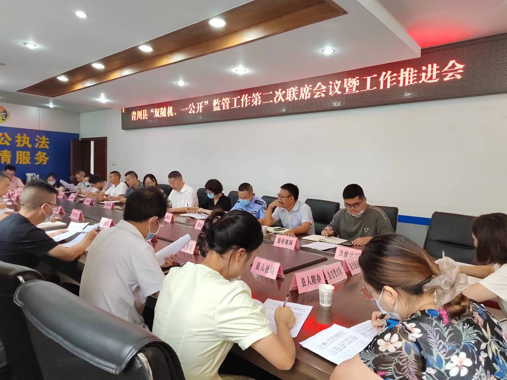 8月24日,青川縣“雙隨機(jī)、一公開”監(jiān)管工作第二次聯(lián)席會議在縣市場監(jiān)督管理局召開,會議由縣市場監(jiān)管局黨組書記、局長何先海主持,30個聯(lián)席會議成員單位分管領(lǐng)導(dǎo)參加會議。