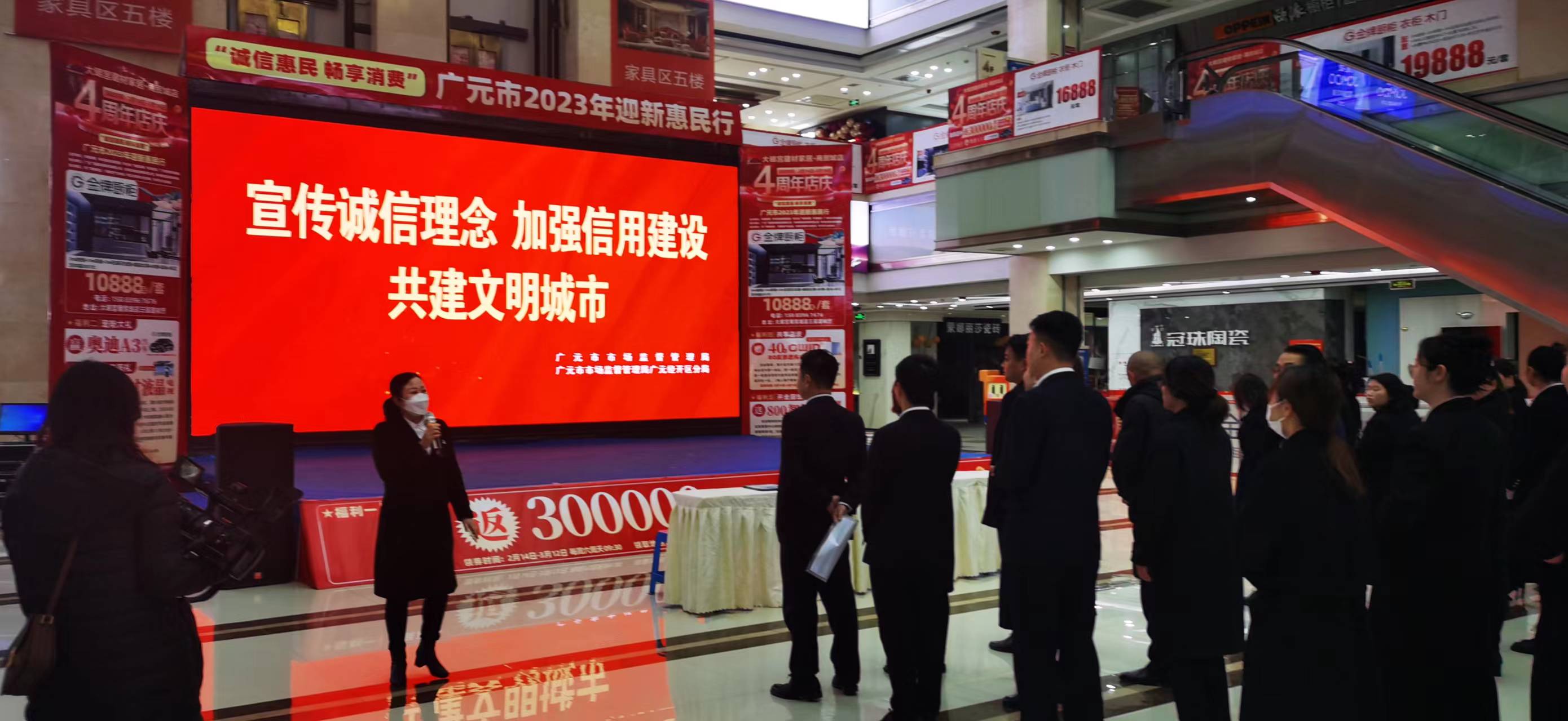 活動開始,主持人講解了本次活動的目的、意義以及如何踐行誠信等,呼吁商戶樹立誠信價值觀,弘揚誠信文化。